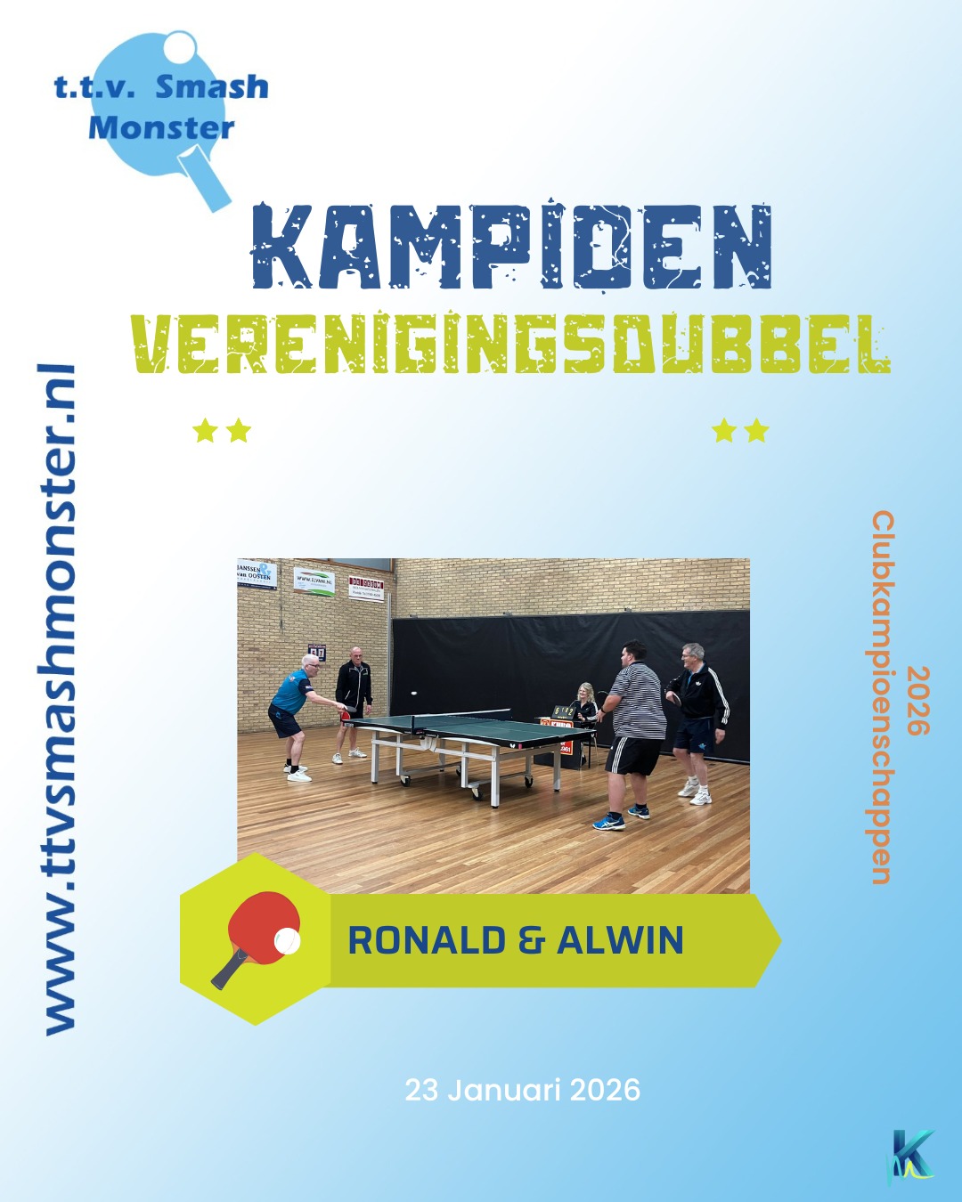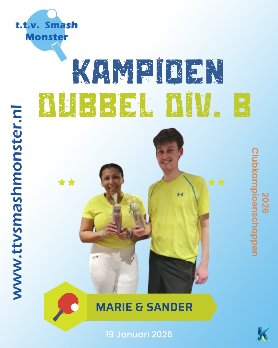 Afgelopen week zijn de clubkampioenschappen voor B en C-klasse gespeeld, de enkels op vrijdag 16 januari, de dubbels op maandag 19 januari, en het verenigingsdubbel op vrijdag 23 januari.